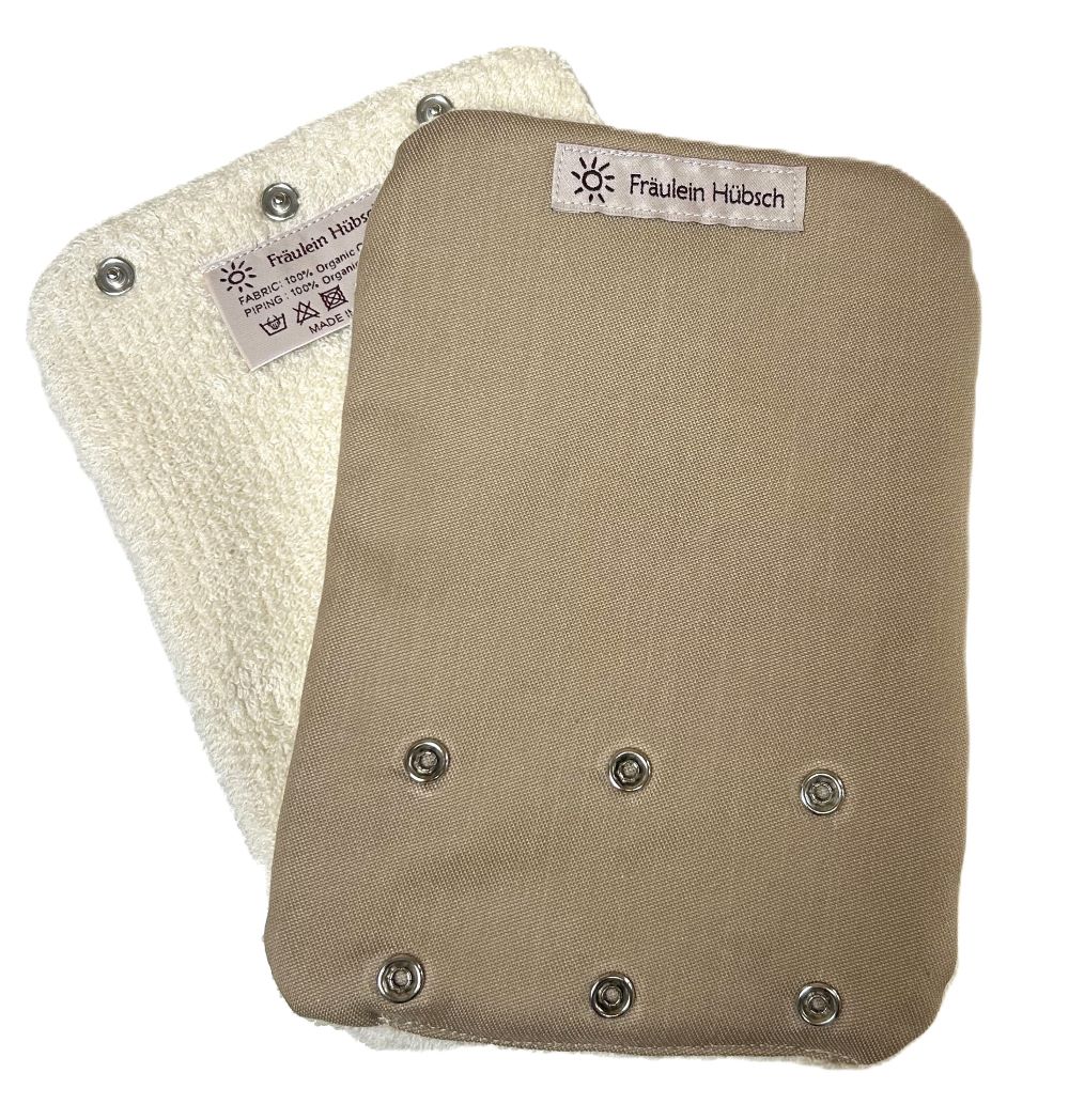 Die Fräulein Hübsch Gurtschoner schützen die Schulterträger deiner Trage hygienisch vor Sabber & Knabberattacken. Aus 100 % Bio-Baumwolle, waschbar.